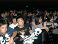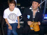 と、思えば、ロビーに出ると、そこでも用意されているのがサウンド・システム。メインのステージ・エリアがファンキィなグルーヴを生み出しているとすれば、ここではちょっとレトロでレイドバック、でも、ワイルドなスカ・ミュージックでホットな雰囲気を生み出そうとしている。ちなみに、先陣を切ったのはスカ・フレイムスのトロンボーン、ナベちゃんが中心となって運営しているCLUB SKAの仲間たち。ロック・ファンにはスカは人気ないのかしら? あまり盛り上がっていないのが、実に寂しい。でも、「いいんです、もう、自分たちで楽しんでますから」と、ナベちゃん。そう、それがいい。なにせ、これは祭りの始まりなのだ。
