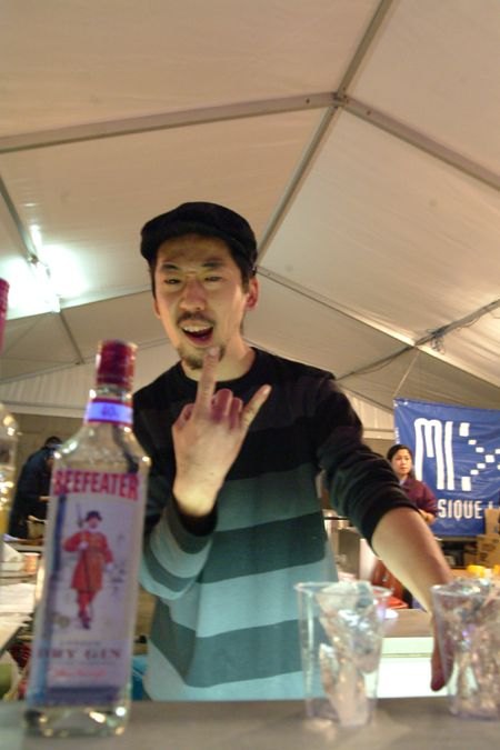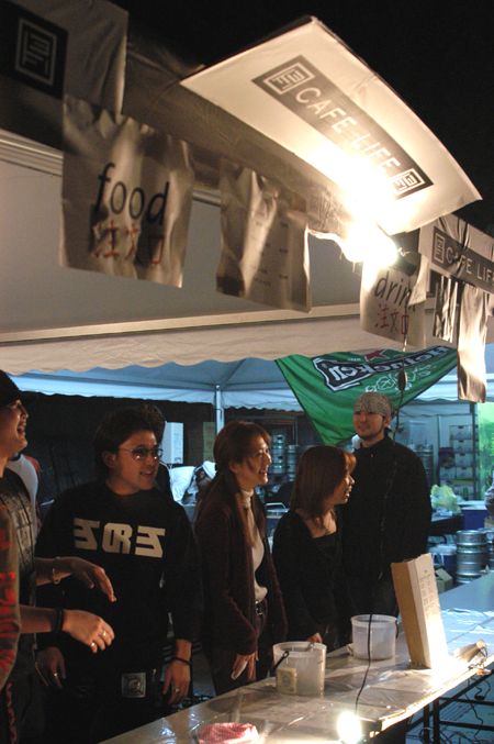 Along the other wall of the main event space we see Cafe Life, an Azabu-Juban bar and restaurant under the direction today of the self-described "King of Azabu-Juban." He keeps his staff of 8 in a state of constant excitement and revelry, chanting and shouting and pouring tequila down the throats of unsuspecting revelers. Magic Rock Out is their first Smash event, and they seem to having a ball. (And their curry is damn good, too...)