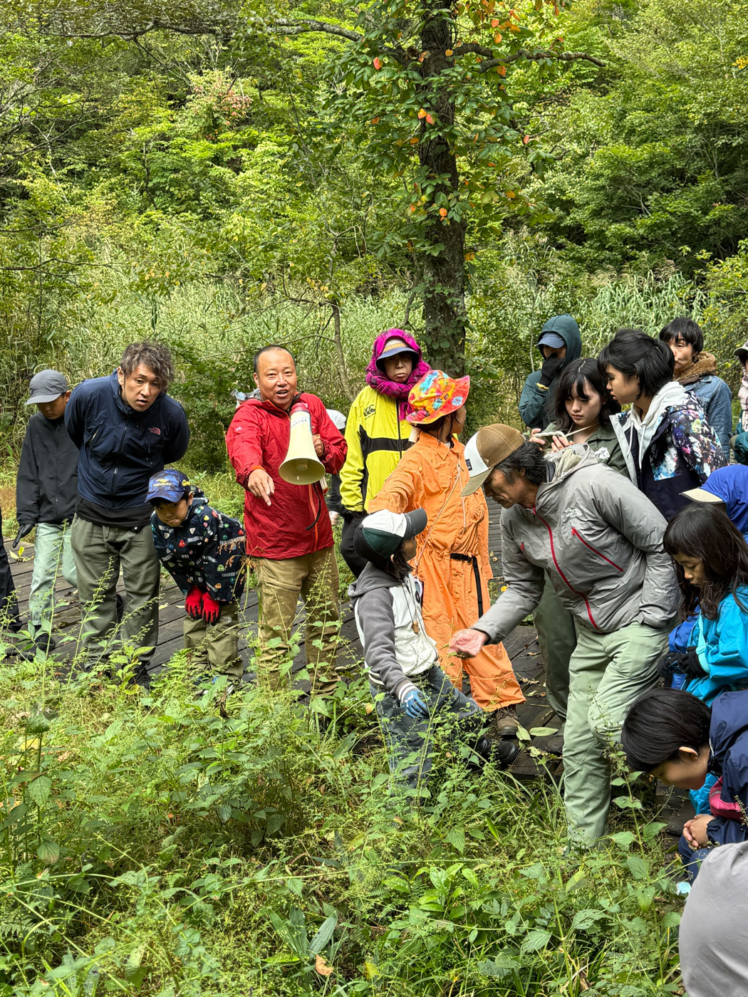 ネイチャーツアーでは、グリーンステージエリアで飛び交うセキレイを観察したり、ボードウォークを歩きながら森の中で白樺と岳樺そしてきのこやクロバナヒキオコシなどの観察、熊の話など自然に関することを色々と学んだ。