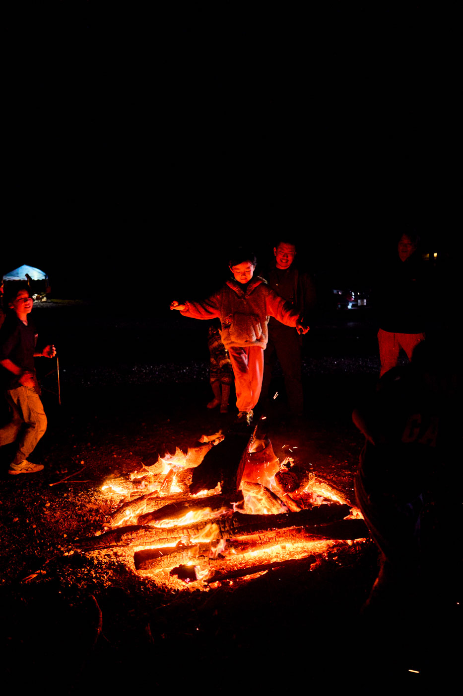 数時間たつと最初は大きかったキャンプファイヤーも火の上を歩くことができるほどの規模に。こうしてボードウォークキャンプの夜は更けて行った。
