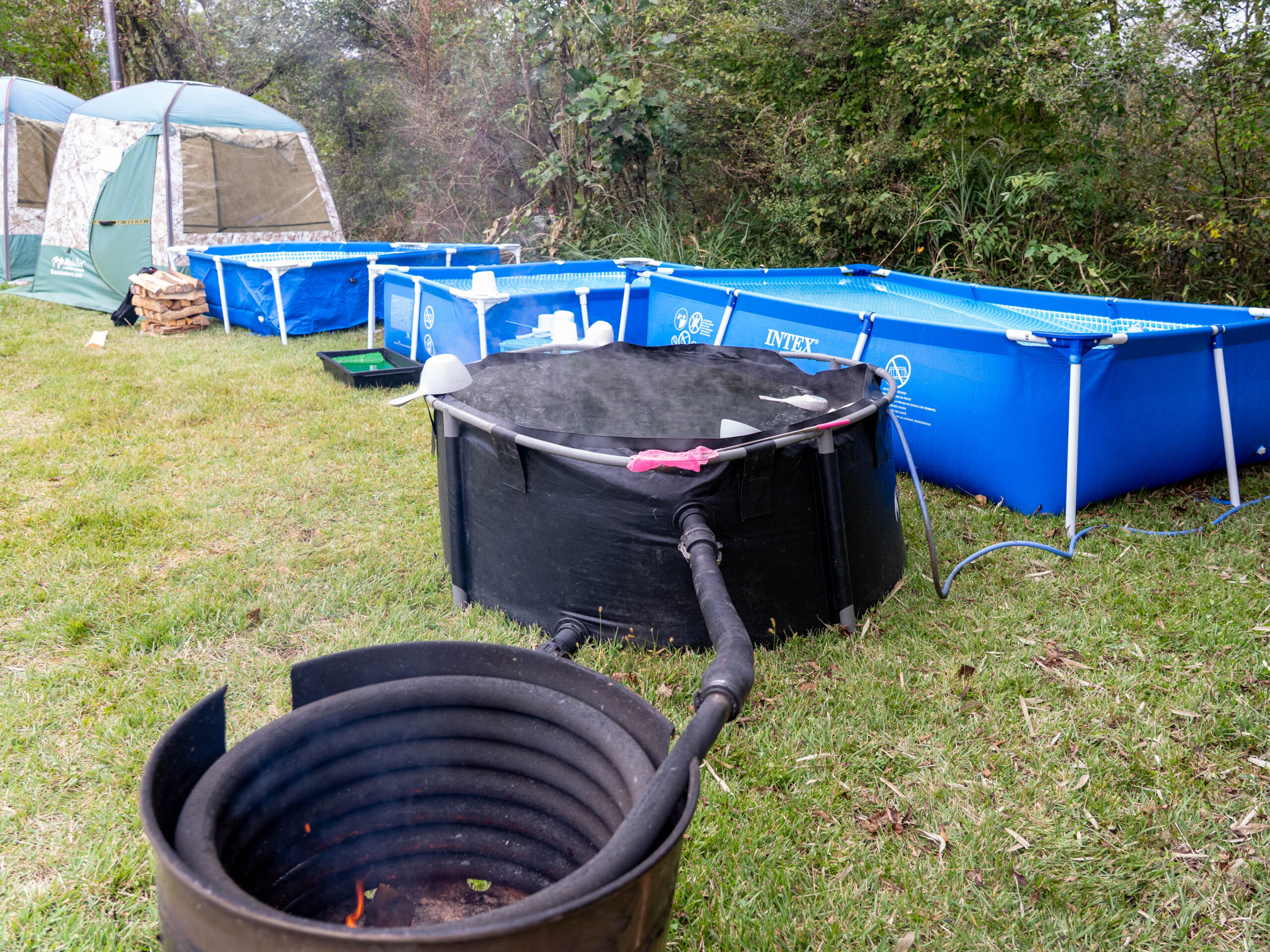鈴木:昨年はサウナ待ちが発生してしまったので、今年はサウナテントを大幅に増設しました。全部で10基設けました。おかげで“入りたいのに入れない”という状況はほぼなく、常にどこかのサウナに入れる状態を実現できました。温かいかけ湯を設けたり、サウナのバリエーションを増やしたりと、より快適に過ごせるよう改良しています。また、今年は初めてオリジナルTシャツや温泉タオルなどのグッズも制作しました。今後は販売にも力を入れていきたいですね。