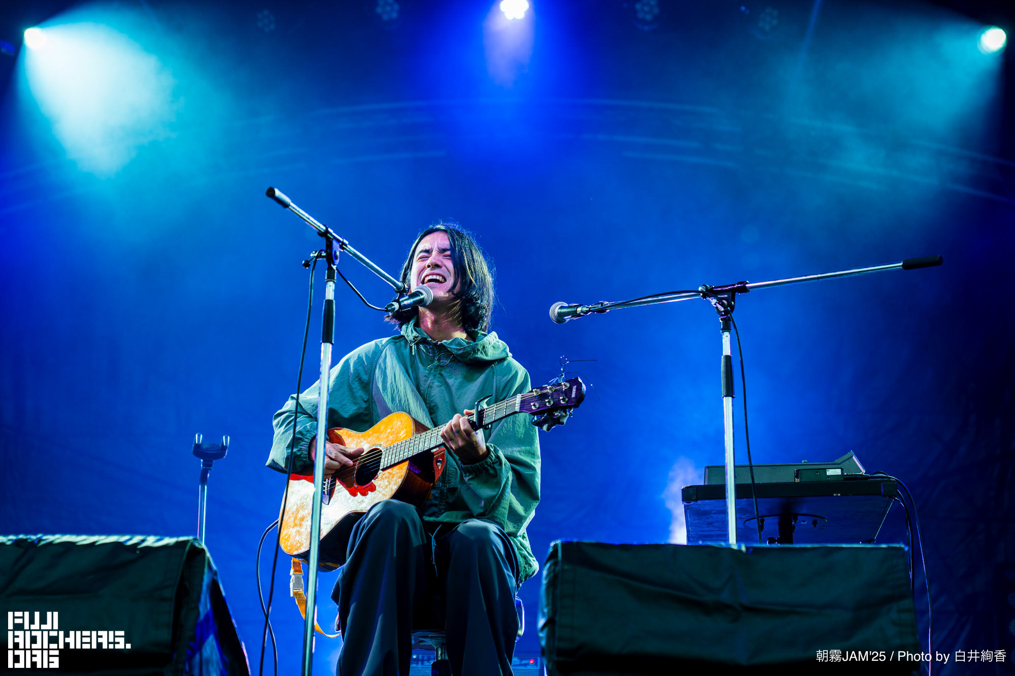 続いて登場したアクトはBIALYSTOCKS。甫木元空はネクタイに腕をまくったシャツというサラリーマンのような地味な出立ちだが、ロングトーンの突き抜けた歌声は最高に爽やかで心地よい。菊池剛による鍵盤の軽快な調べも朝霧の朝をゴキゲンに彩ってくれる。次に控えるアニー&ザ・コールドウェルズのメンバーたちがステージ横で手を叩き踊っている。フレッシュな歌声とグルーヴィーな演奏で場を沸かしつつも“コーラ・バナナ・ミュージック”や“ただで太った人生”などの珍妙な歌詞の歌を入れ込んできて一筋縄ではいかない。このギャップがたまらんのである。「雨はいつか 歌に変わる」“Nevermore”でステージを終える頃には降り続いていた雨が完全に上がるという奇跡まで引き起こしたのだ。