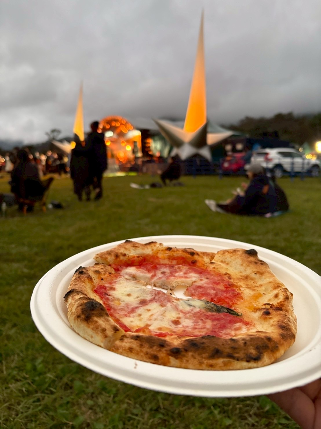 ムーンシャイン・ステージの方も。地元、静岡県沼津市のナポリピッツァ専門店の『ラルバディナポリ』でど定番のマルゲリータを食す。焼きたてのあの熱さでもちもちときた。ついでにワインはないの?あるってよ!白も赤も。このエリアでは『SPICE6』でスパイシーチキントクパというスパイシーな焼きそばを食べた。ここのチキンがドカッとのったビリヤニがこれまた美味そうだったので、また戻ってきて食べてしまうことになるのだ。一緒にいた妻が頼んだのはパンにチキンを豪快にサンドしたカマージ。一口食べさせてもらったがこれも美味だったなぁ。思い出してお腹がすいてきたぞ。