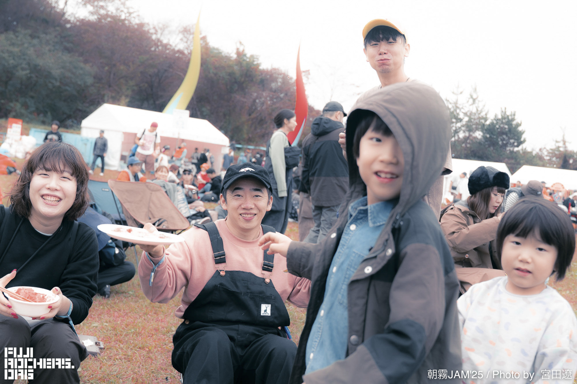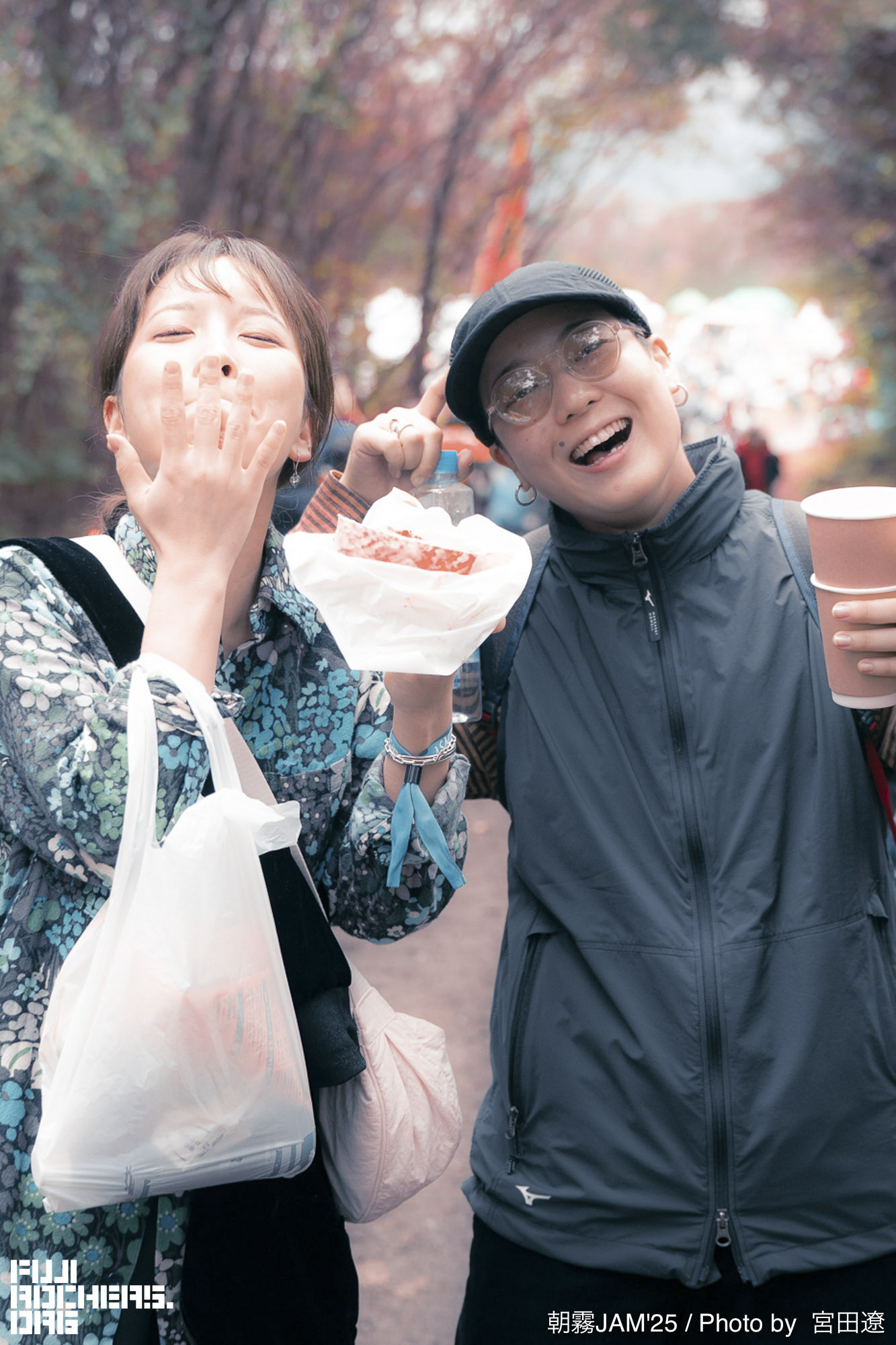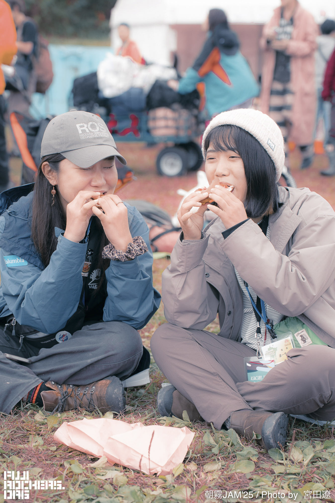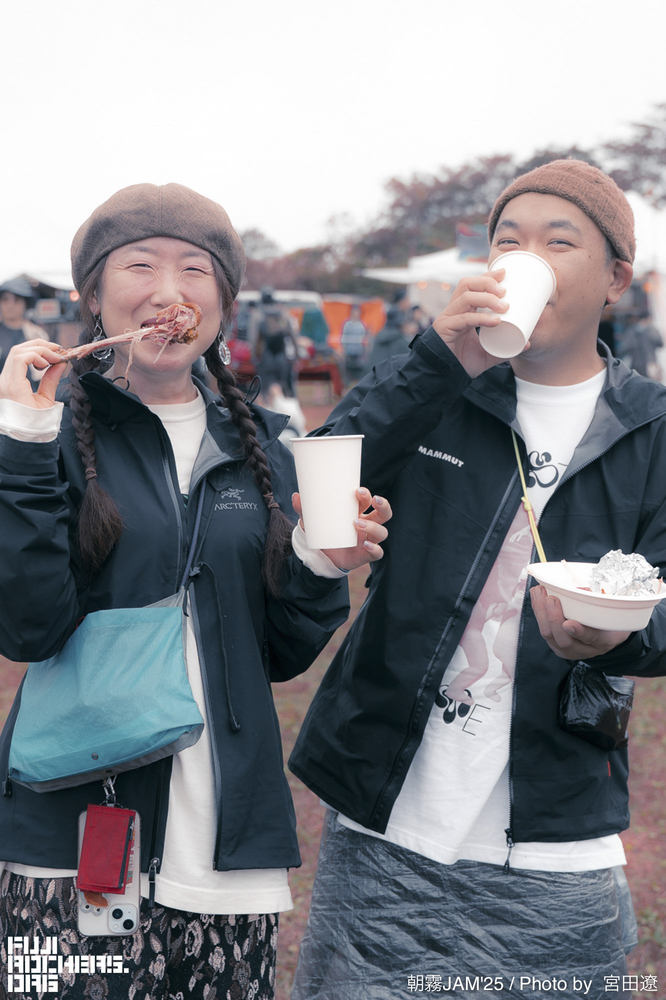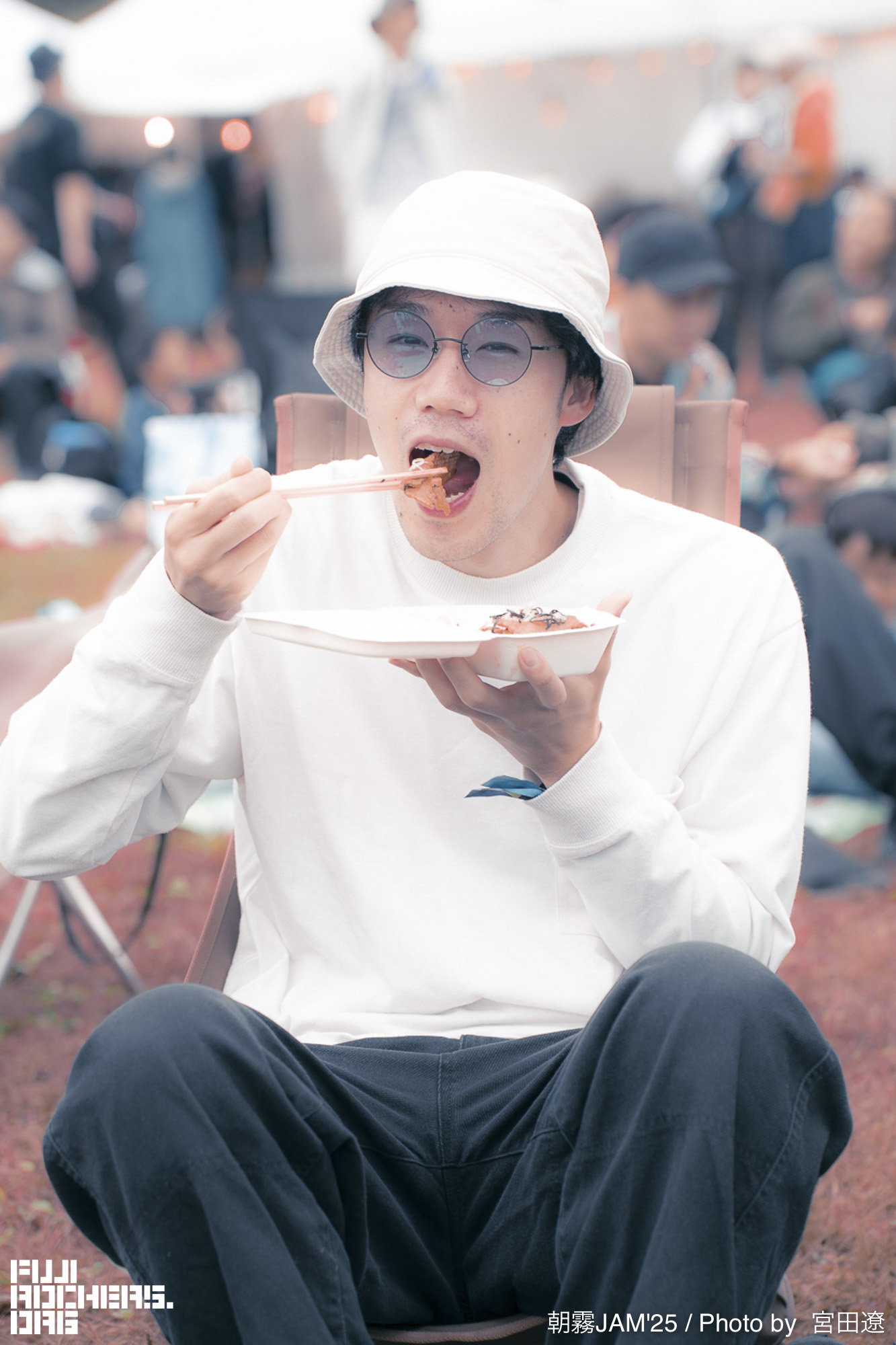 今回は「突撃!朝霧の美味い飯」と題して、そんな幸せな瞬間を切り取るべく、来場者の皆さんの“食べる笑顔”を撮影させていただいた。音楽と食、そして自然がひとつに溶け合うこのフェスの魅力を、少しでも感じてもらえたら嬉しい。