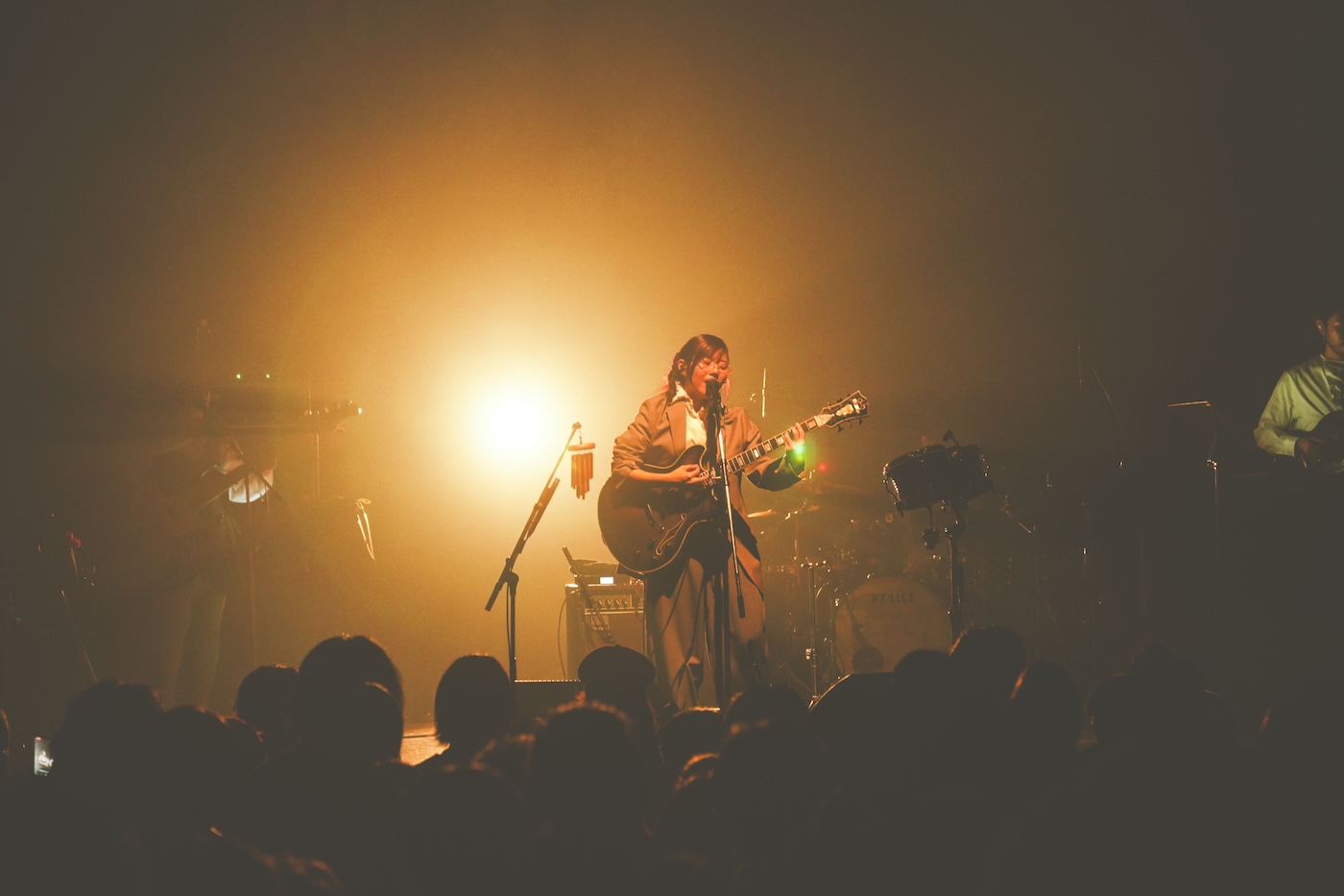そう言って始まった “祝福” 。白色、琥珀色、そして薄いピンク色が混じり合う照明の下、さらさのヴォーカルは “生(せい)” の温かみと親密さを増し、より純度の高い生音に近いバンドサウンドと相まって、彼女の思いと、それに共鳴するファンの感情が見事に溶け合っていく。サウンドには目立ったエフェクトや、夢見心地なレイドバック感はない。だからこそ、この曲のメッセージはダイレクトに心へと響き、深く染み込んでいくのだろう。