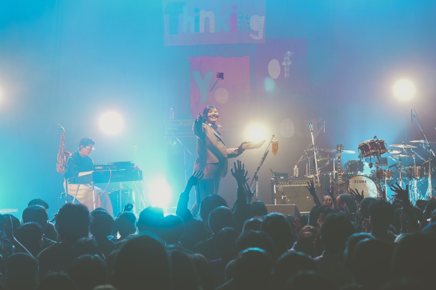 永遠に目を向け素直な感情が表層した “Thinking of You” には、これまでの曲にはない、ストレートな感情が詰まっている。それはライブが始まる前の時点でわかっていたことだ。しかし、そんなストレートな熱い感情が既存曲にも波及し、さらに加えて“shakunetsu” のようなダンサブルでエモーショナルな新曲も入ることによって、セットリスト全体に曲に合った熱を帯びさせる── と、まさかここまでライブに広がりを見せるとは、正直言っていい意味で想定外だった。