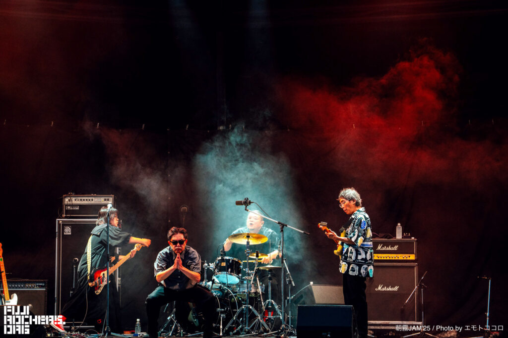 RAINBOW STAGEに戻り、いよいよお待ちかねの我が推し、ZAZEN BOYSを目撃しました。すでに温まっているオーディエンスが和やかな空気を作っていて、相変わらずちょっとおかしい向井秀徳のMCと相まっておもしろいステージでした。最近再び披露されるようになった“安眠棒”や、向井のヘンテコなサイドステップに笑わされてしまった(本人も笑っちゃった)“ポテトサラダ”、その流れからの不意打ちの“永遠少女”など、ド直球だけどやや意外なセットリスト。彼らを観に来てよかった〜!今回も素晴らしかったです。