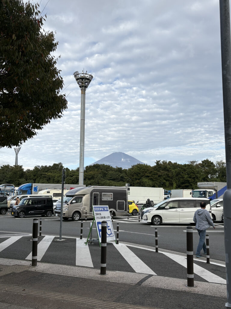 道路状況は意外と順調。足柄SAでトイレ休憩に立ち寄ったところ、大きな富士山を観測。想像より大きな姿にSちゃんもテンションが上がっていました。フードコートで簡単に朝食を済ませて、先へ急ぎます。