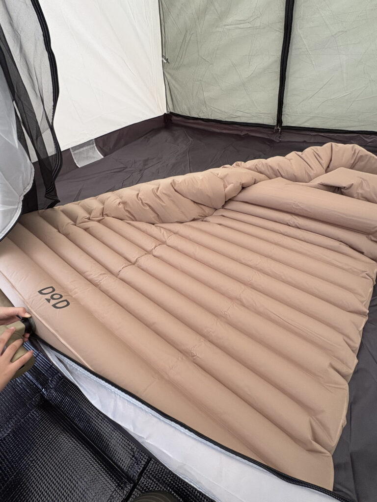 DODのエアーマットを小型エアポンプで膨らませました。すごい!