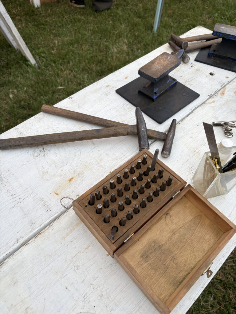 Nくんとバングルづくりのワークショップに参加。真鍮の棒をハンマーで叩いてととのえ、お互いに好きなバンドの曲名を打ち込んでみました。簡単にできてとてもかわいい。