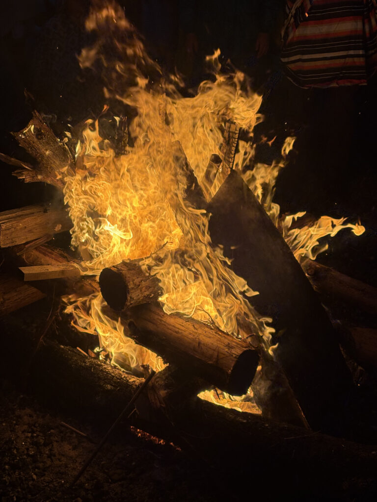 お酒を追加し、竹原ピストルを観ました。いつ観ても人の温かさに触れることができるパフォーマンス。会場は暗くなってきて、焚き火も盛り上がってきました。とってもいい雰囲気!