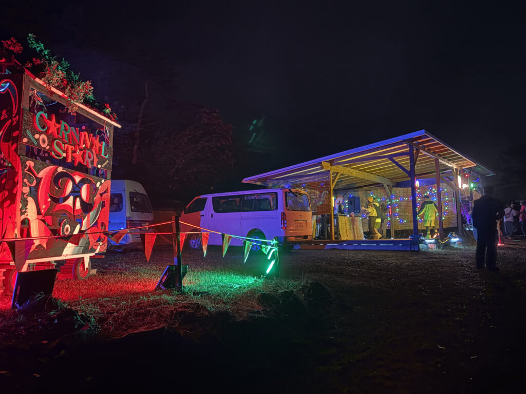 筆者が朝霧JAMに参加するのは今回で2回目。前回〜今回までに「奥地にいいバーがあるらしい」という噂を聞いたので、会場の奥を散策。ここか……カーニバルスター!踊りながらワインを乾杯して、大人も子どもも楽しい「うんちぽいぽいゲーム」をしました。