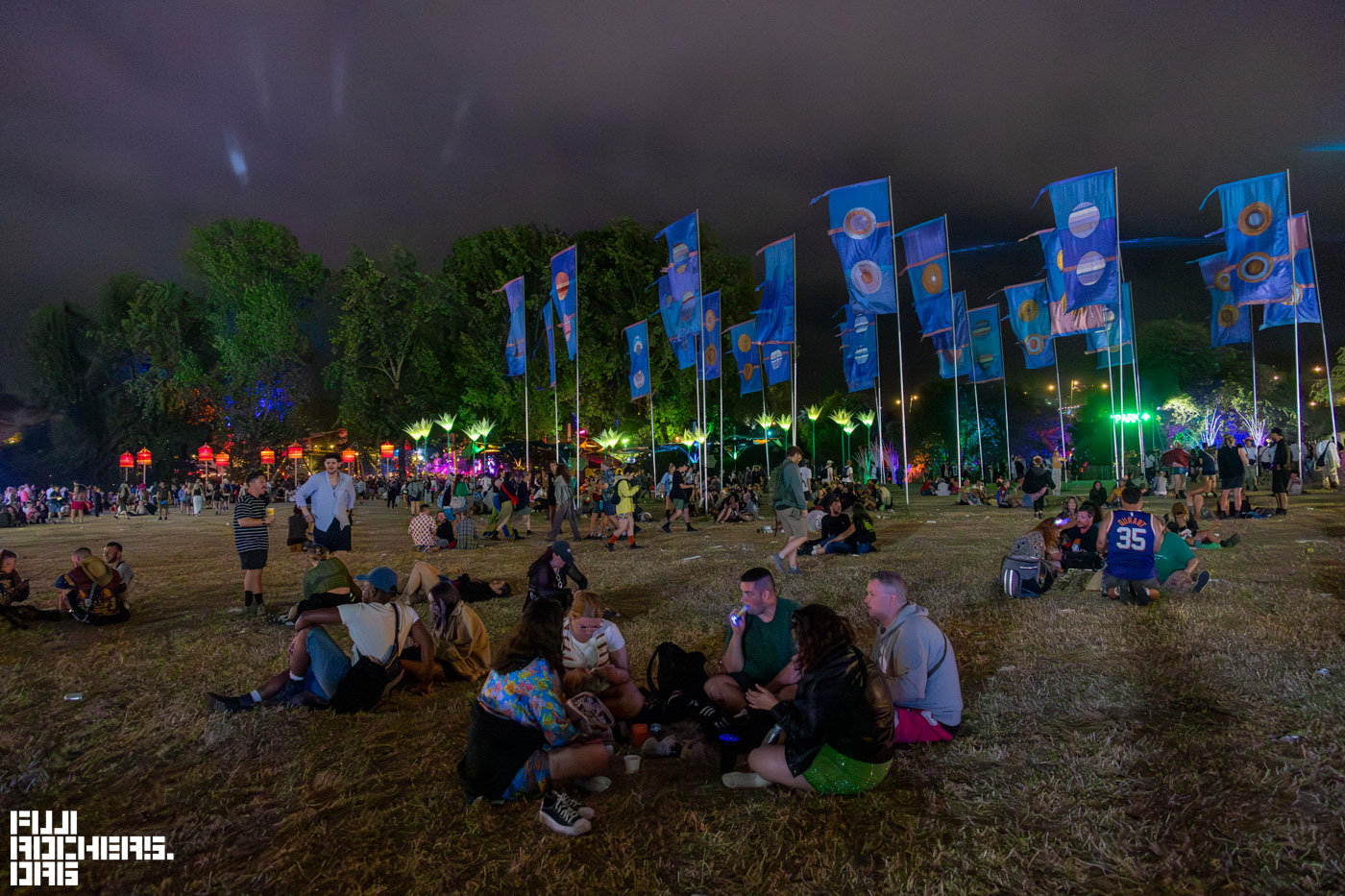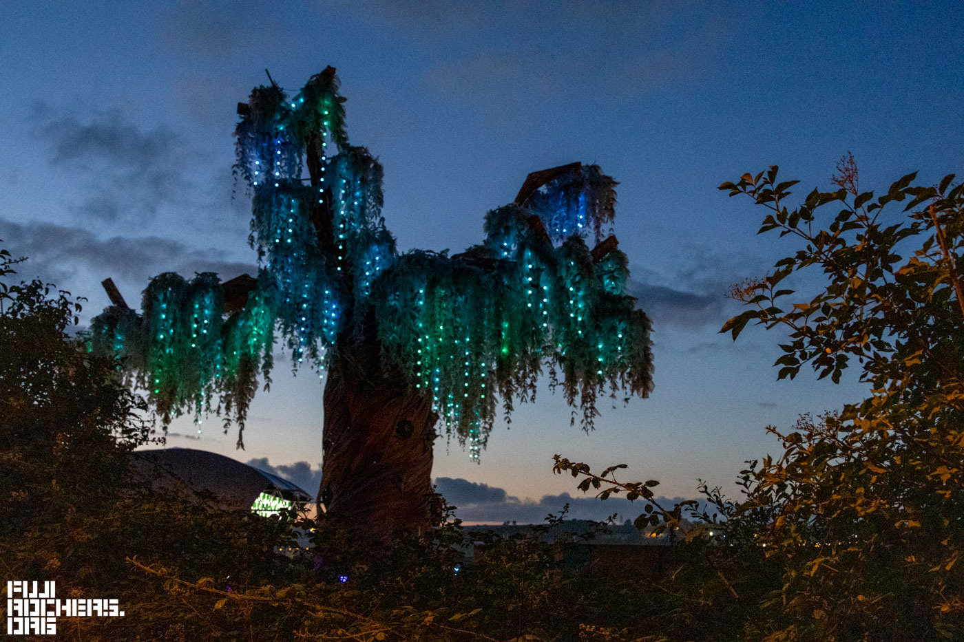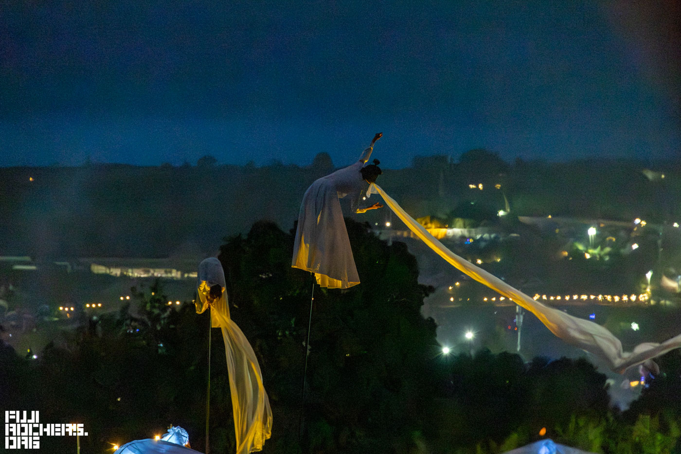 夜になると装飾に明かりが灯って、幻想的な雰囲気を纏っていた。翌日にはキャンプ地になるというエリアもまだこの日は、がらんとして広々と見える。