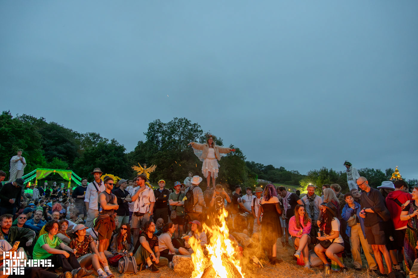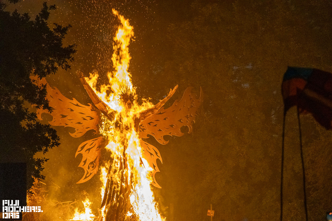 焚き火の周りで何かが生じるわけではなく、本当にいつの間にやら儀式のようなものが始まっていて、そして斜面の先でゆらゆらと揺れる女性たち、演奏に合わせての合唱、そして花火が打ち上がって歓声があがり、巨大な木像には火が放たれた。