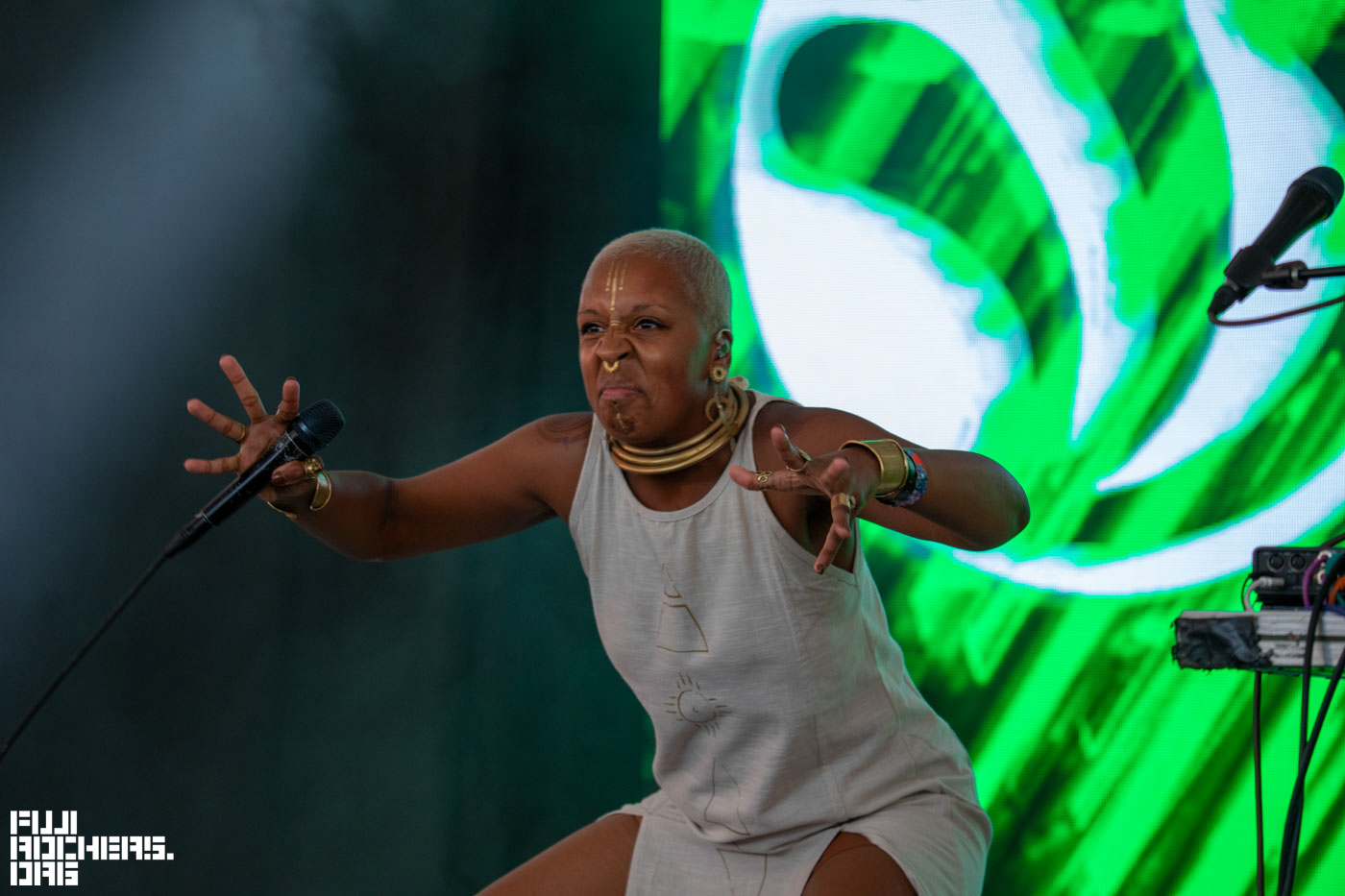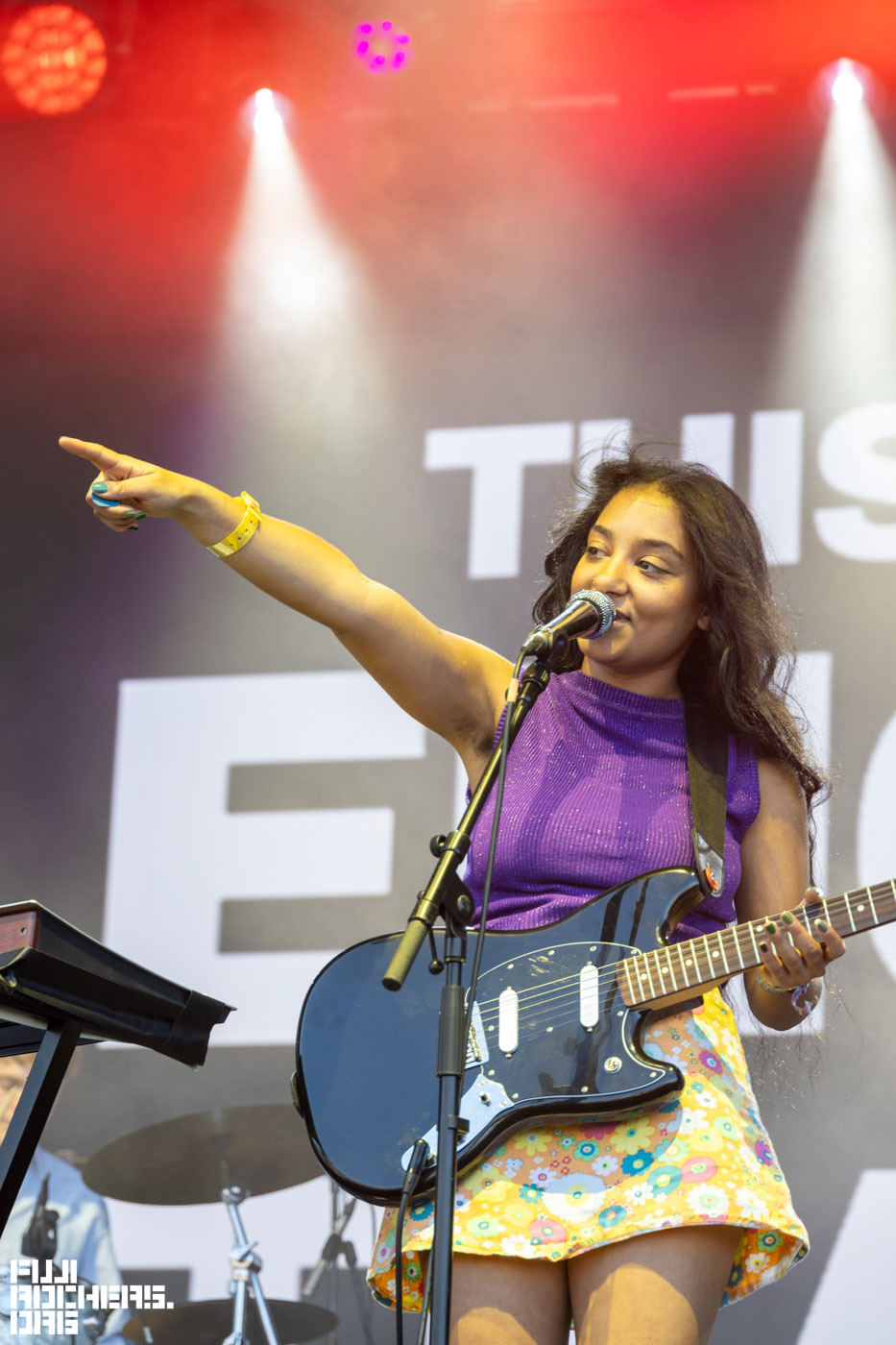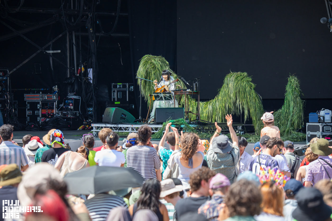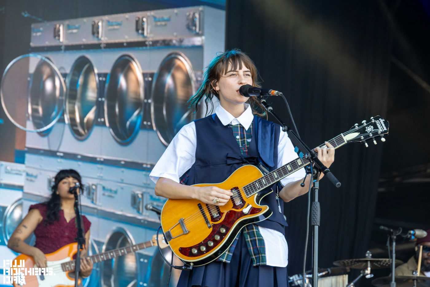 その後、会場内南側方面のTHE PARK STAGEに移動して、この年のFUJIROCKにも出演するFaye WebsterとEnglish Teacherを撮影。ステージ規模はFUJIROCKのホワイトステージぐらいのサイズ感で、パッチワークのような色とりどりの装飾がポップな印象だった。