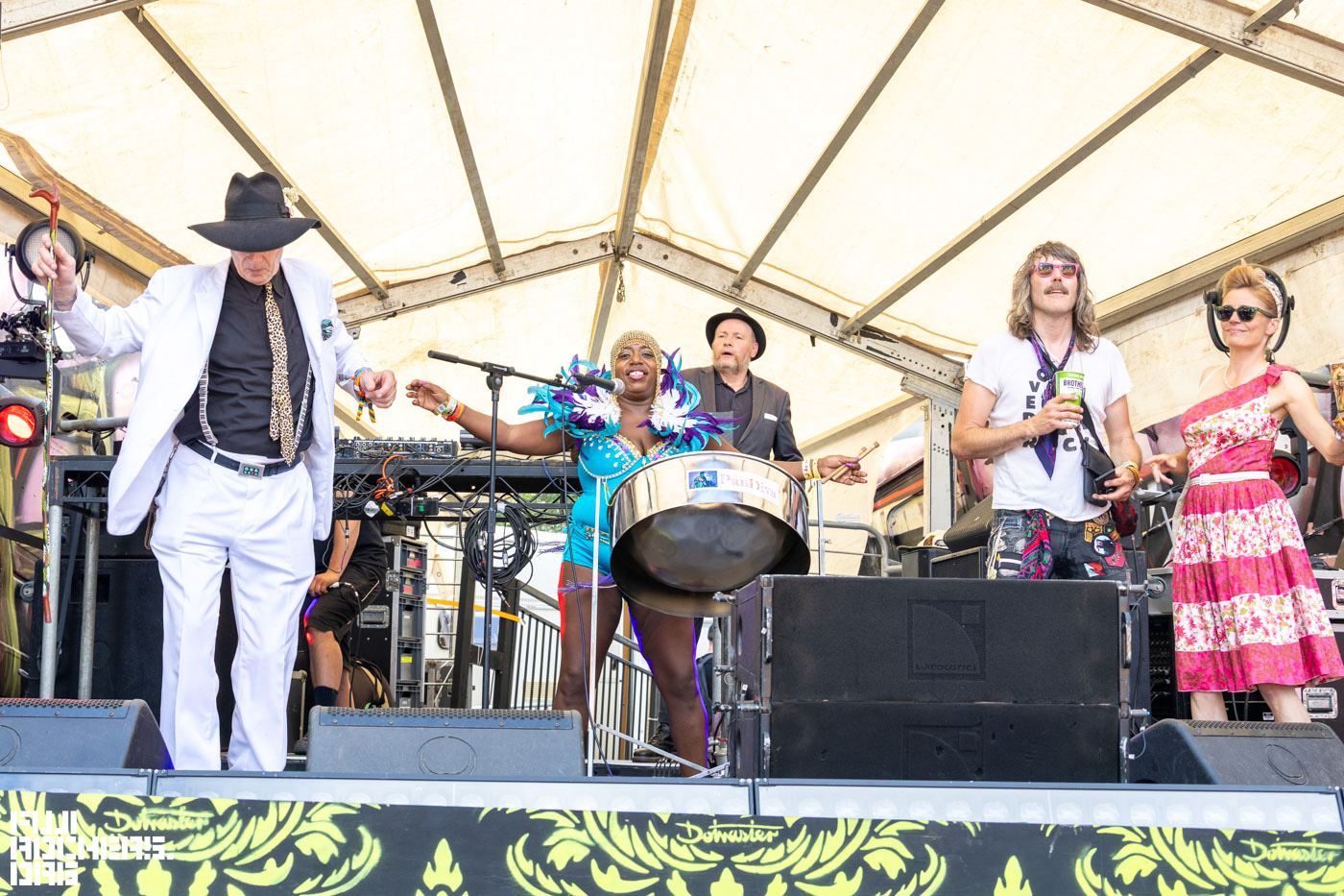 PIER-10ACES STAGEを通りかかった際、賑やかな演奏が聞こえてきて立ち寄ってみた。タイムテーブルで確認するとAMBERLIGHTSが演奏していたようだ。好みの音楽のステージに遭遇できることがとても楽しい。