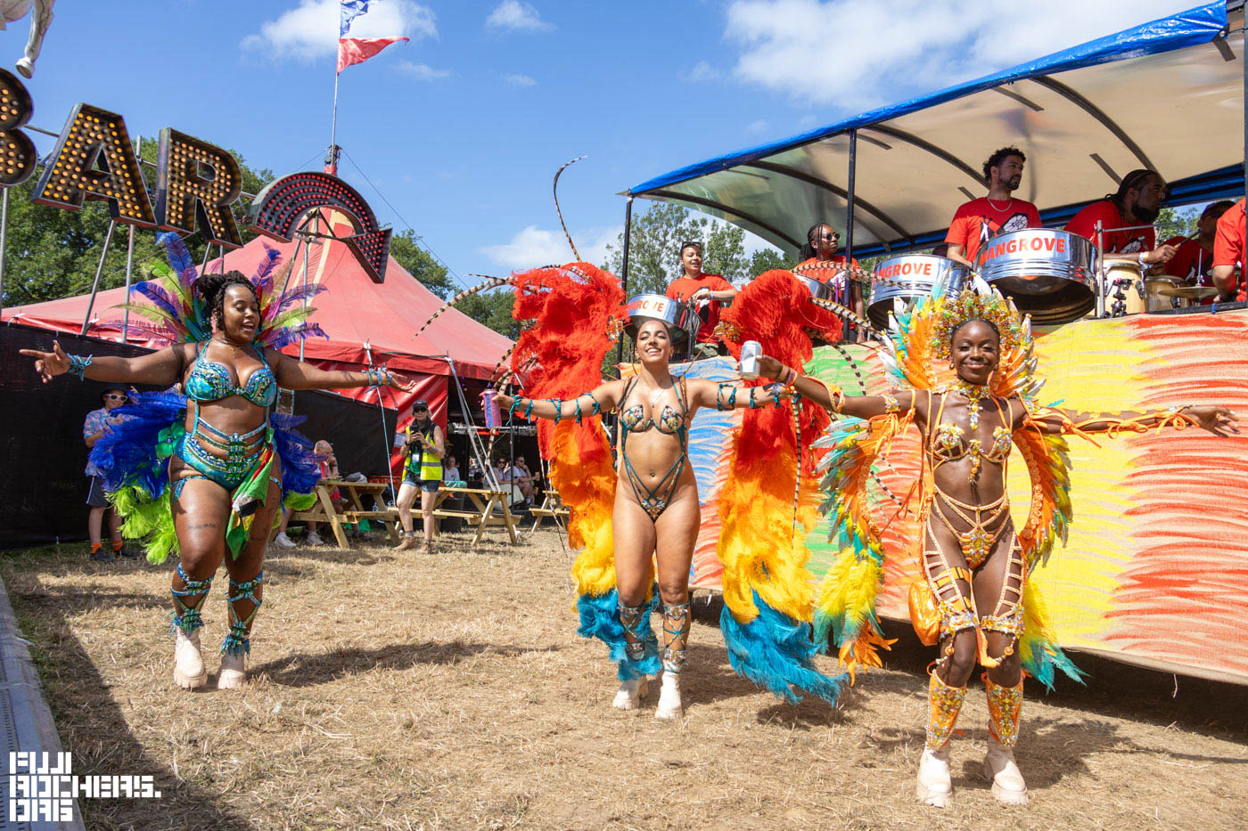 なんと、FUJIROCKや朝霧JAMなどで顔馴染みの方に遭遇することができた。特にBeBeさんはFUJIROCK EKPRESSに初めて参加した2018年にMOREFUNのPEOPLEで撮影させていただいたことがあるので、イギリスの地でお会いするのはなんだが不思議な感覚であり、同時にとても嬉しかった。