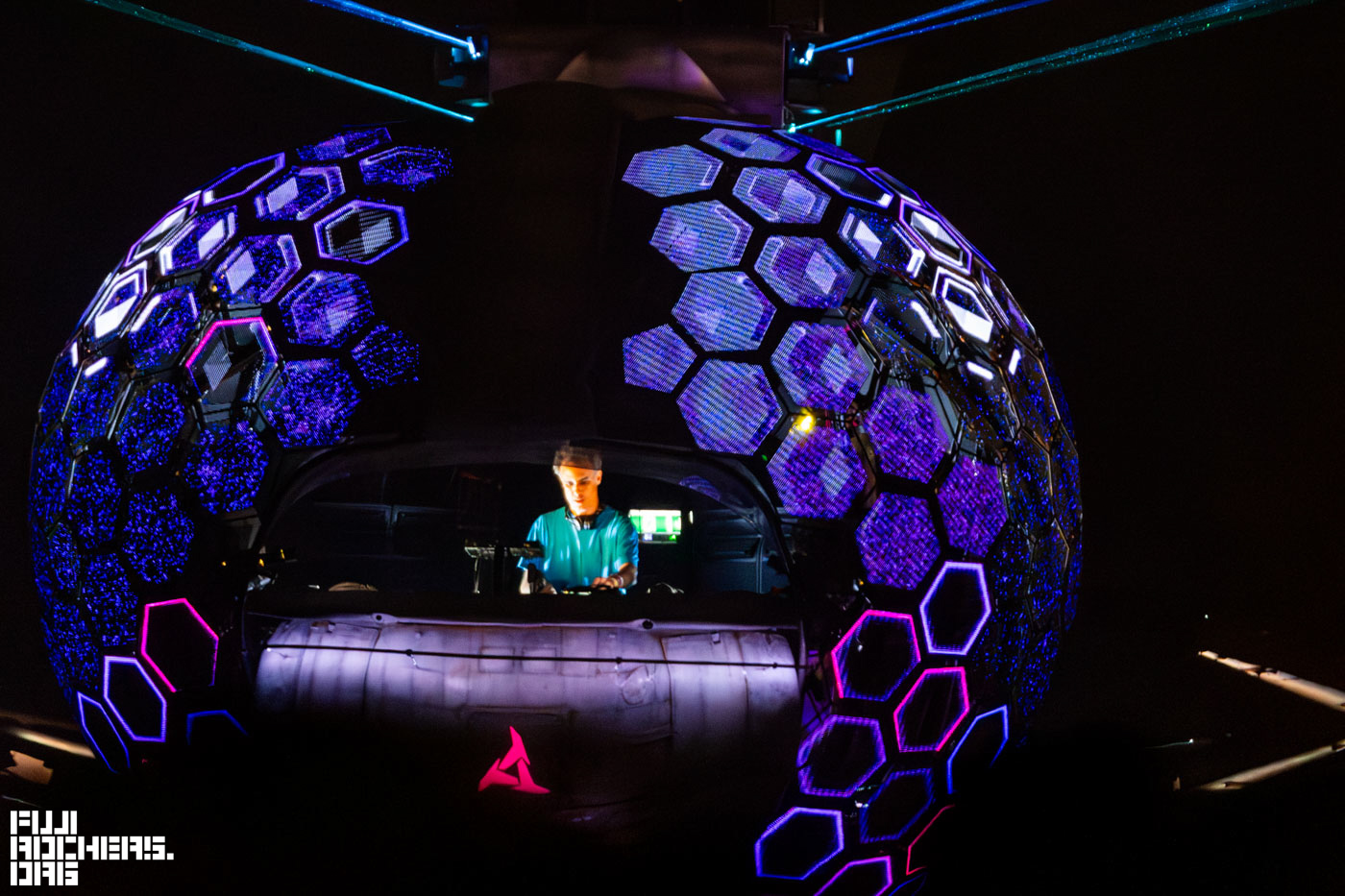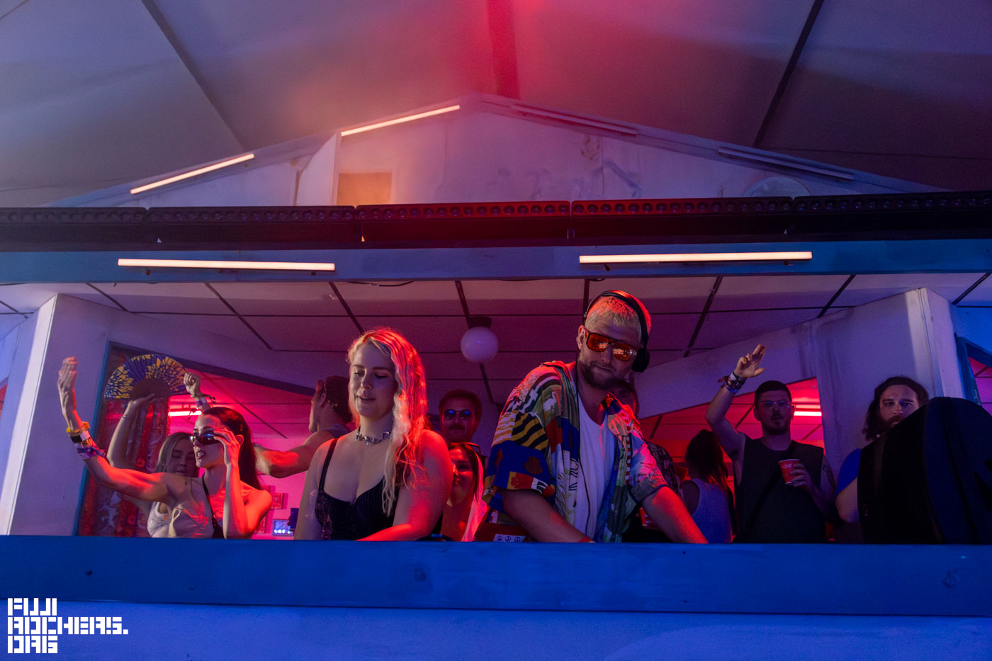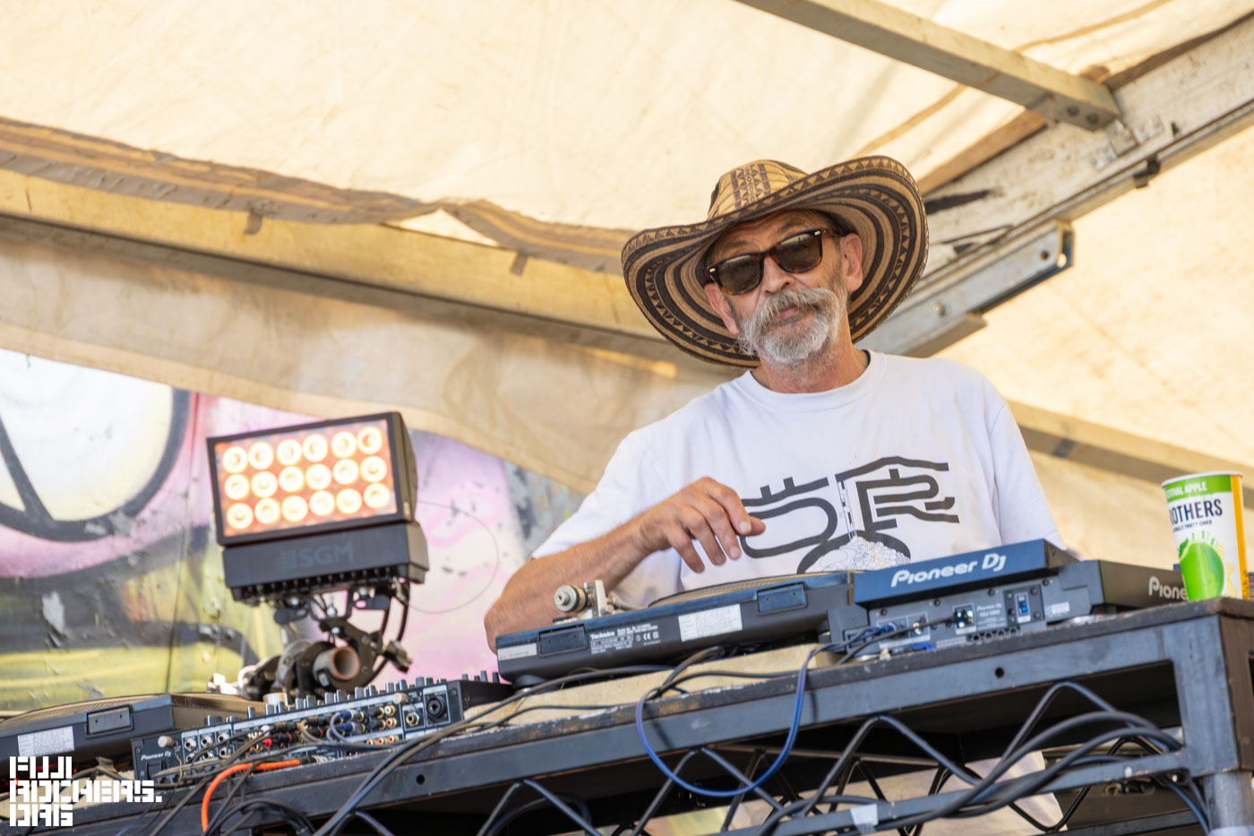 周囲ではDJのステージも複数開催、カメラを携えて歩いていると「今、ここに世界的に有名なDJのFatboy Slimが来ているよ、写真撮らせて貰いなよ。」とスタッフの方に声をかけていただきFatboy Slim氏にお声がけしてBARのDJブースとともに撮影させていただいた。私の聞き間違いがなければDJは息子さんらしい。