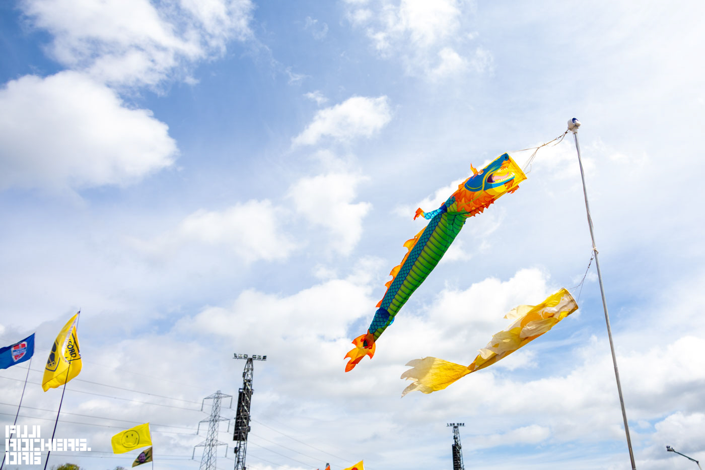 27日にはPYRAMID STAGEなどメインのステージでもLIVEがはじまった。PYRAMID STAGEで1番最初のSupergrassの演奏を見に行くとさまざまなフラッグが掲げられ壮観だった。ちなみに、鯉のぼりもあって日本人としてはなんだか喜ばしかった。