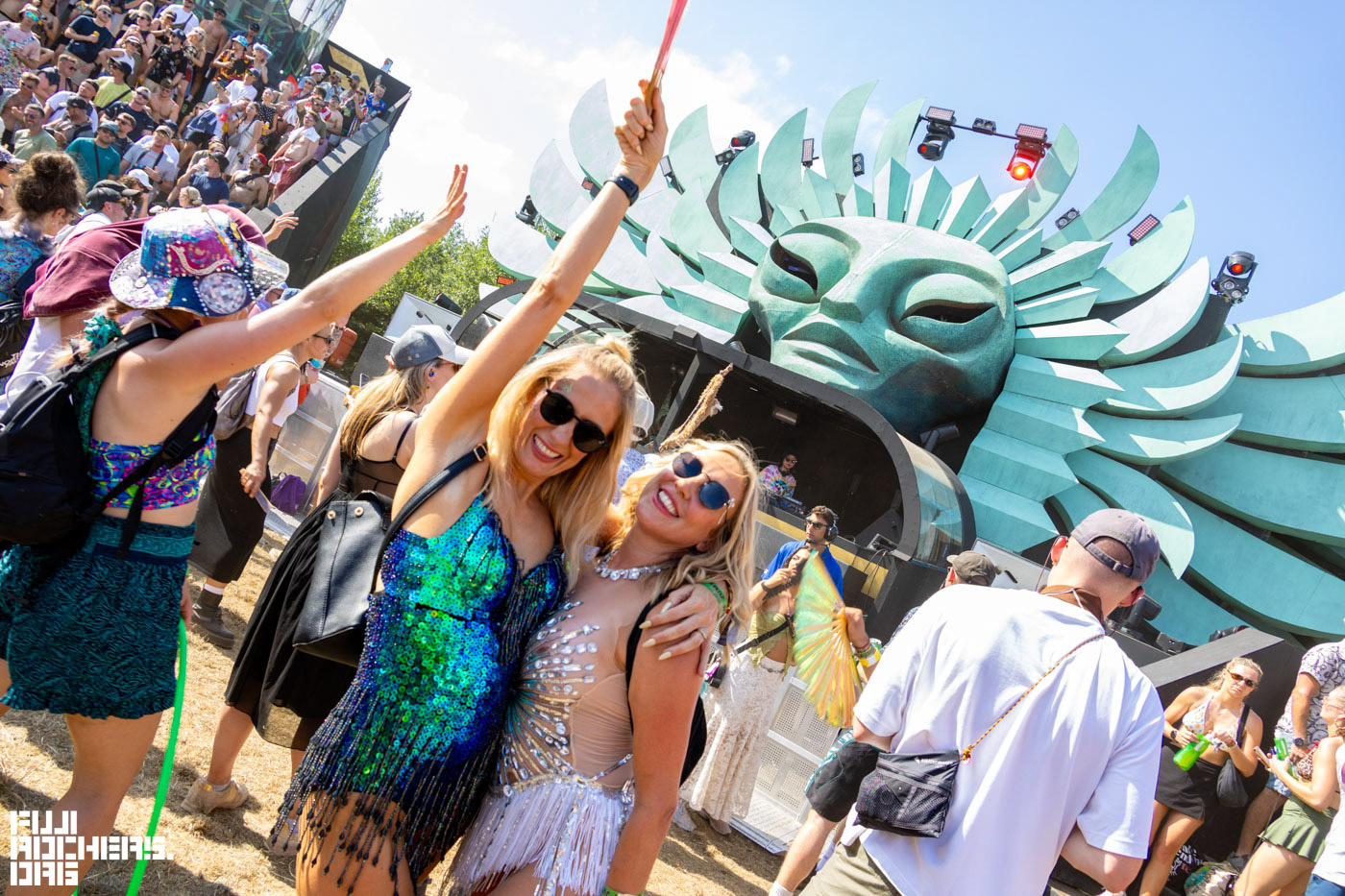 THE COMMONのTHE TEMPLEへ行ってみたら、入場までに行列ができていた。入場するとDJステージに向かって席があり、鉢状の構造はまるでコロシアムのようで圧巻だった。踊っている方々に「日が暮れて寒くなってきたらどうするのか?」と尋ねると、「朝までずっと踊ってるから大丈夫なのよ!」とのこと。JYOTYのDJステージでも同じ様な答えが返ってきた。みなさまたくましい。