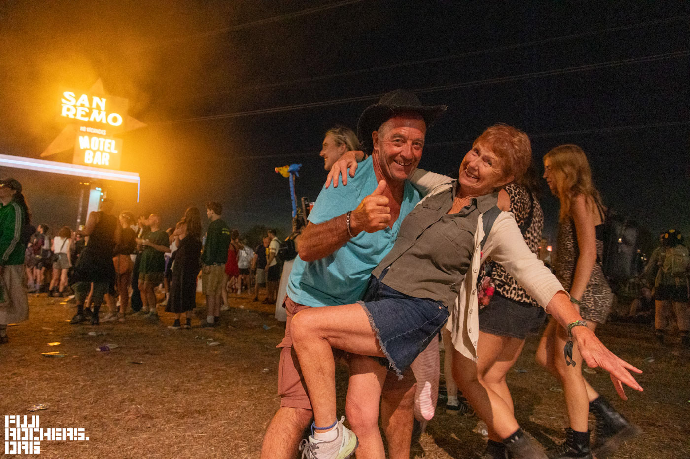 最後の最後に、26日に出会った女性のボーイフレンドがDJをすると聞いていたSAN REMOに向かった。ここは会場内からテントに戻るためによく通るため、連夜人が溢れ賑やかな場所という印象だったが、ステージ前まで入って行ったのは初めて。DJのブースだけでなく複数の人々がステージに上がっていて少し不思議な感じもした。人も多いので再会は難しいかとも思っていたが、先日の女性にも再び会うことができた。Glastonbury Festivalで嬉しかった思い出の一つだ。メインステージがフィナーレを迎えたのか花火が上がったのに合わせて老夫婦がダンスを踊り始めた。とても素敵な光景で記念に一枚撮影をさせていただいた。