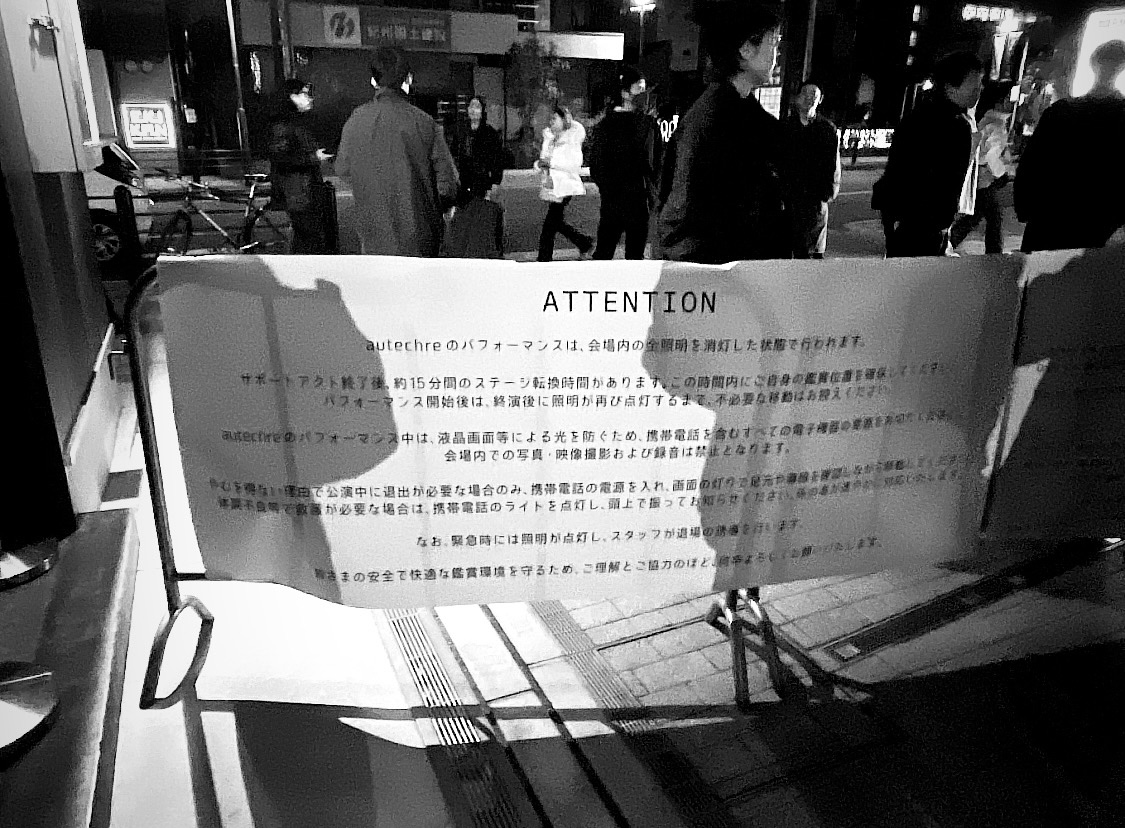 そう感じさせてくれるのは、オウテカがオーディエンスを信頼し、僕らもスマホの電源を消すなどしながら自制的に応えているからでもあり、ある意味ではモッシュピットにおける信頼関係とも似ている気がする。右に倣えのわかりやすい安心が渦巻く現代において、各々の主体性をここまで信頼し、こういったかたちで解放される体験がどれだけあるだろうか。どこまでも純粋に音楽と交わろうとする2人とオーディエンスのプリミティブな欲求が、視覚情報を遮断するというかたちで最大化され立ち現れた、なんとも刺激的な一夜だった。