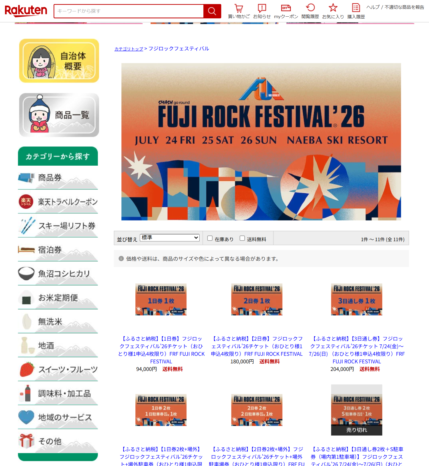 ※各取り扱い返礼品には制限があります!お目当てがある方はお早目に!(注意!2月25日10時時点でFUJI ROCK go roundの土曜券は売り切れていました。。。)