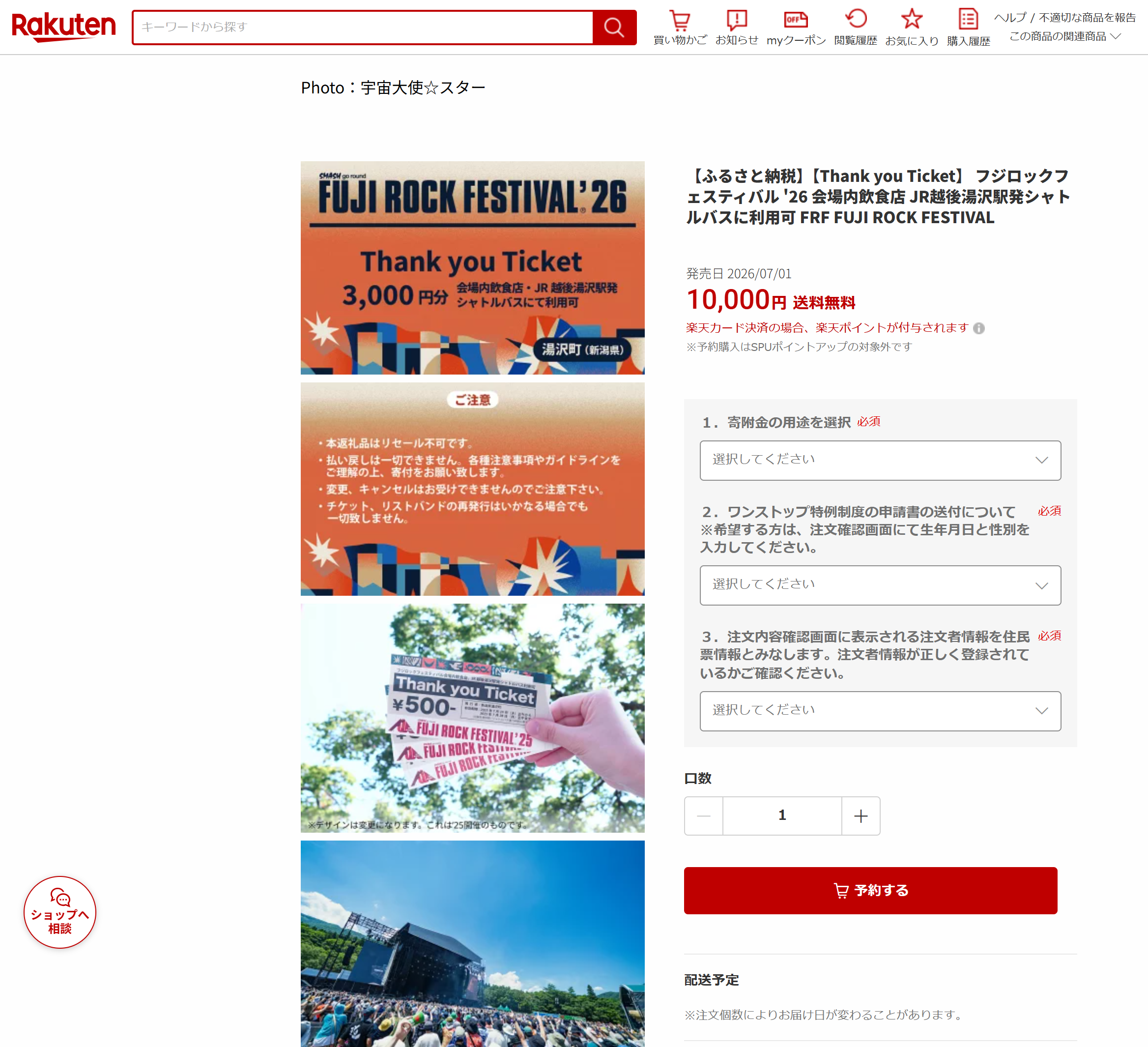 2026年も、FUJI ROCK FESTIVAL(フジロック)がふるさと納税の返礼品として登場しています。