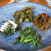 冒頭からご飯の欲しくなる写真で失礼します。お皿の上から時計回りにうど、山蕗、雪ささ、わらび。実はこれすべて苗場で採れた山菜です。ご飯ももちろんですが、「お酒のあてにもピッタリじゃないか!」。そう考えたあなたはすでに立派な苗場通です。