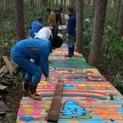 フジロック会場のグリーンステージ~ホワイトステージ、ホワイトステージ~フィールド・オブ・ヘブン~オレンジコートの各ステージ間の森の中を通るボードウォーク。これは全てボランティアの皆さんによって作られています。今年も申込みがスタートしました! 一人参加も少なくないボードウォーク、単独で参加したフジロッカーの声をどうぞ。